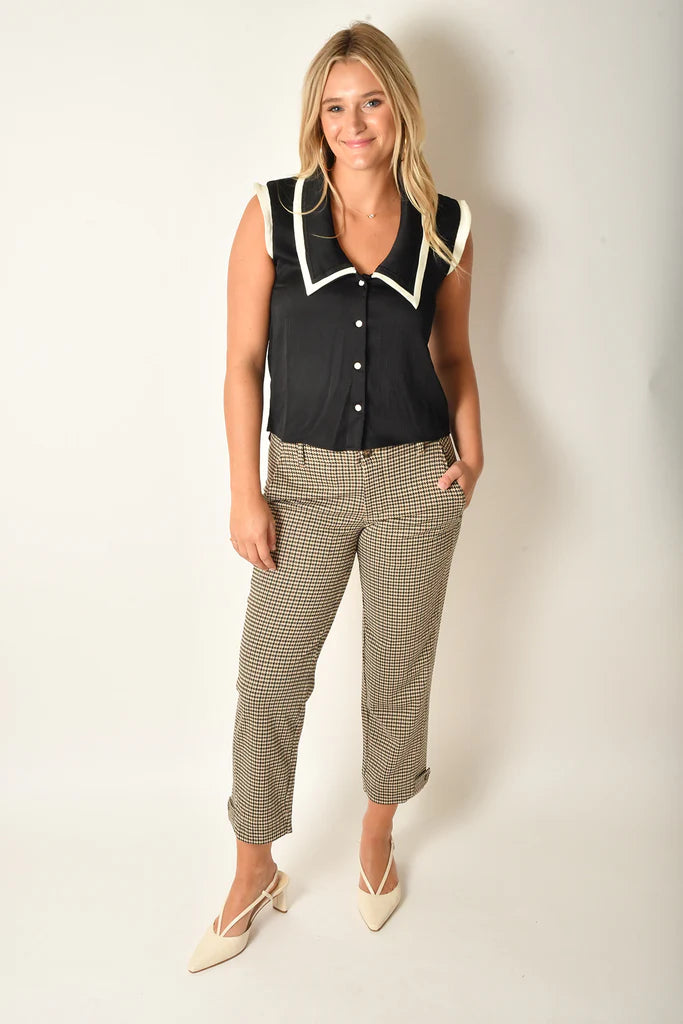 Elevate your wardrobe with the Bishop + Young Essex Top, featuring a striking black and white trim and a sleek sleeveless design. Perfect for date nights or a polished workday look, this versatile top adds a stylish edge to any outfit. Comfortable and chic, it's ready to make you stand out wherever you go.