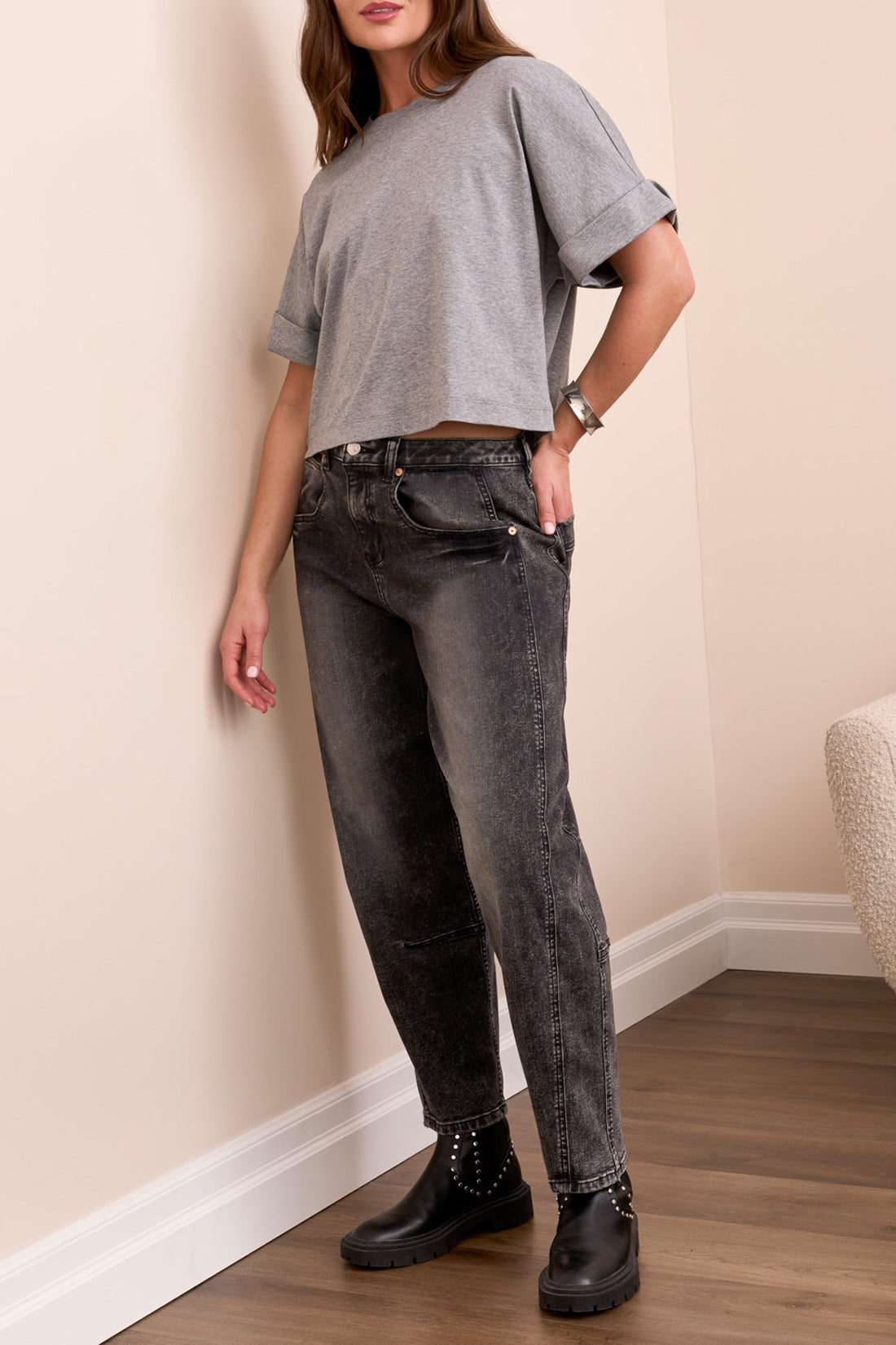 Experience everyday comfort with the Tribal Audrey Girlfriend Barrel Denim in light grey. Crafted from soft denim, these jeans offer a relaxed fit that moves with you, perfect for casual outings or laid-back days. The light grey wash adds a modern touch to your wardrobe, making them easy to pair with your favorite tops.