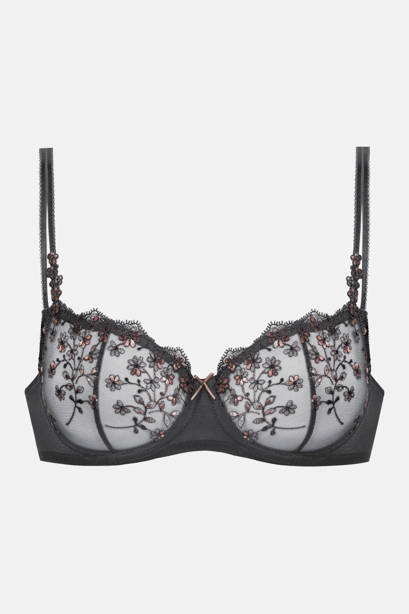 The modern balconette underwired bra from the Delightful series perfectly accentuates the décolleté. In the elegant colour Thunder Grey, it impresses with high-quality materials, fine lace and a modern, feminine look. The careful workmanship ensures optimal support and a comfortable fit, while the balconette shape creates a particularly attractive neckline. Ideal for customers who value quality, comfort and stylish elegance. Our bras are Oeko-Tex® Standard 100 certified, which means that with this product, you are actively choosing textiles that have been tested for harmful substances.
