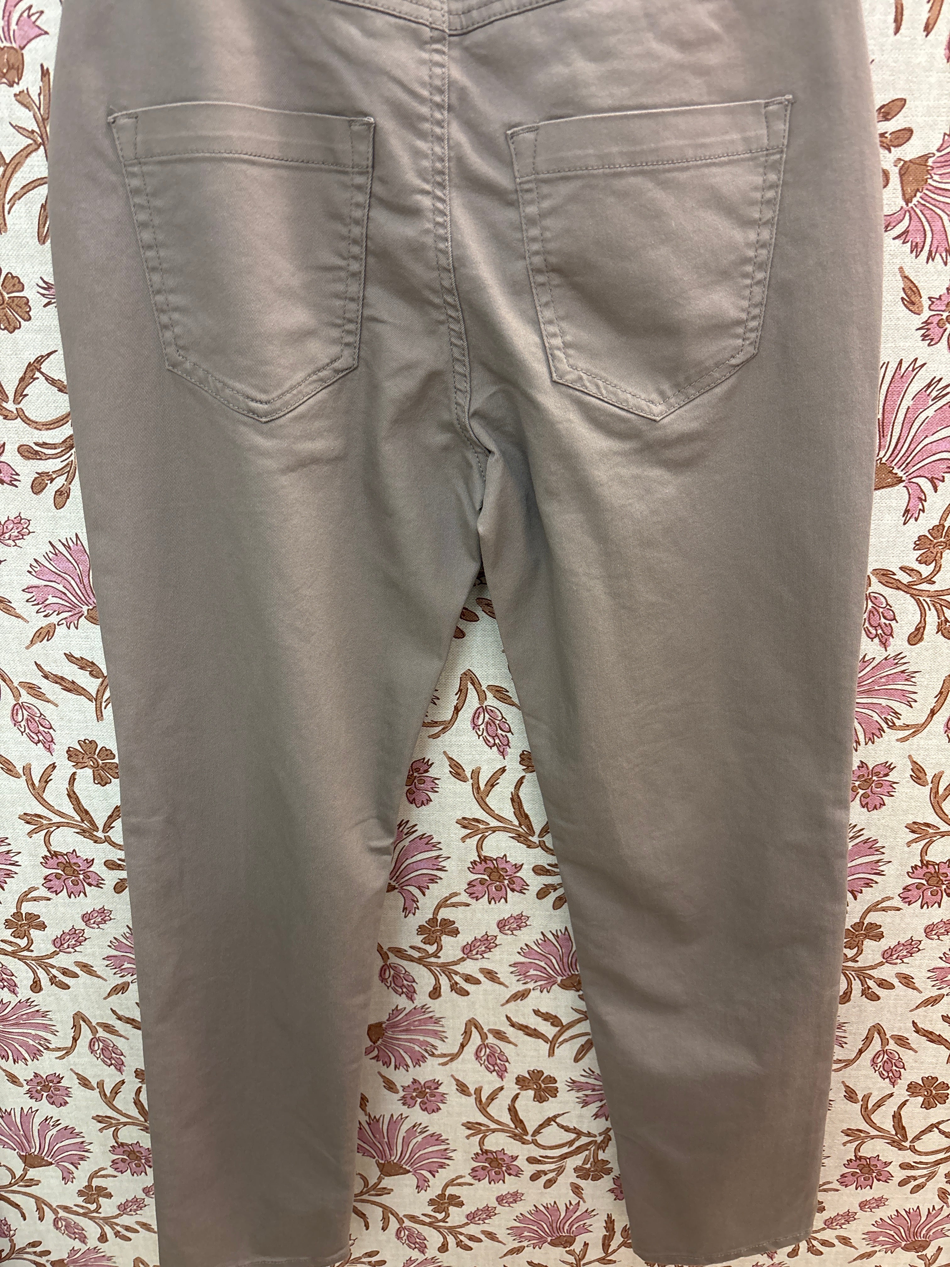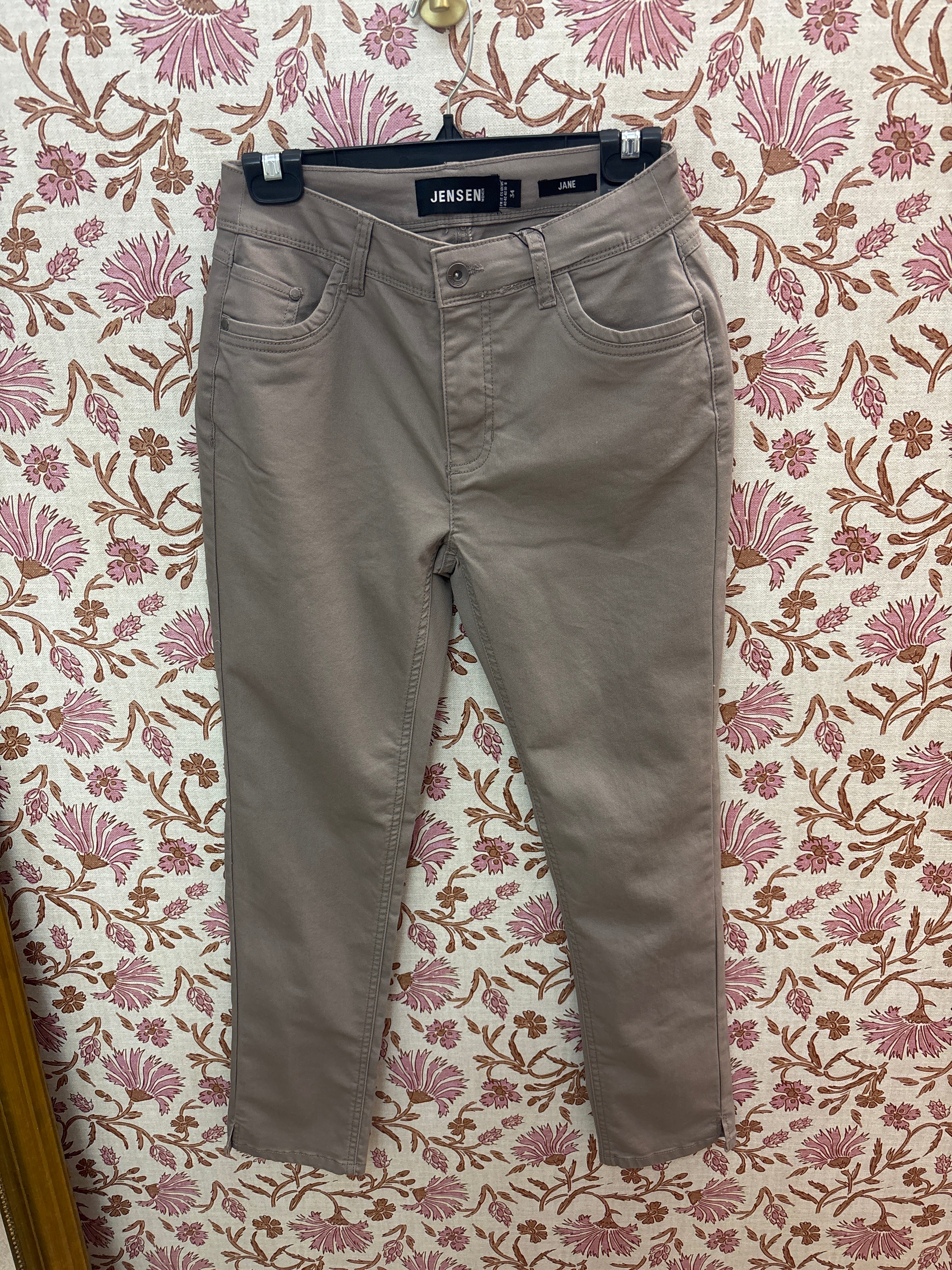 The Jensen Jane Pant 28" in Fungi grey offers a comfortable mid-rise fit with a straight, slim leg silhouette. Crafted from a soft cotton-poly blend, these pants provide both durability and breathability, making them perfect for everyday wear. Their versatile grey color easily pairs with a variety of tops, adding effortless style to your wardrobe.