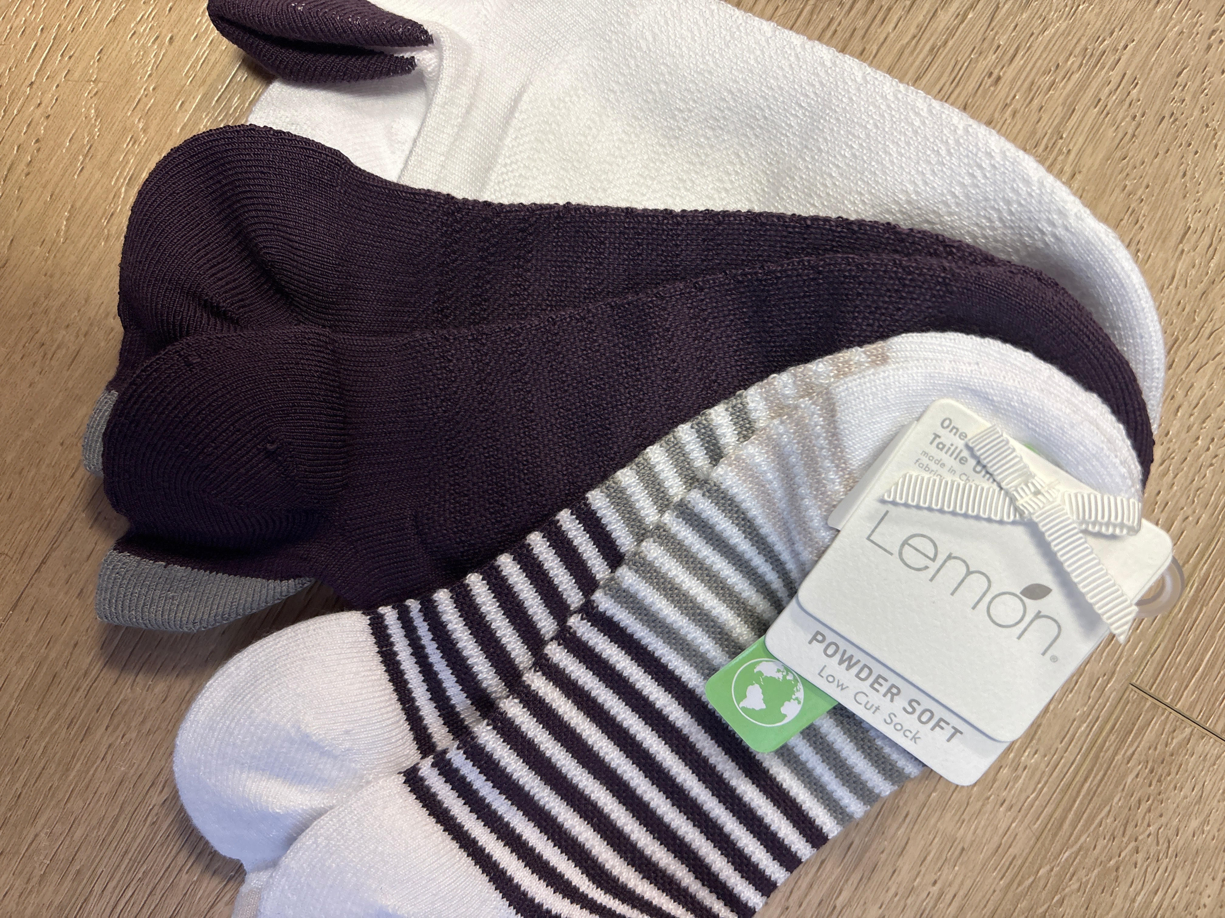 Slip into cloud-like comfort with these plush terry socks that feel as good as they look. Each pair features a cozy heel tab for extra support and a powder-soft finish that keeps your feet happy all day long. This three-pack comes in gorgeous shades of plum, white, and grey—mix and match to match your mood. Perfect for lounging, running errands, or just living your best sock life.