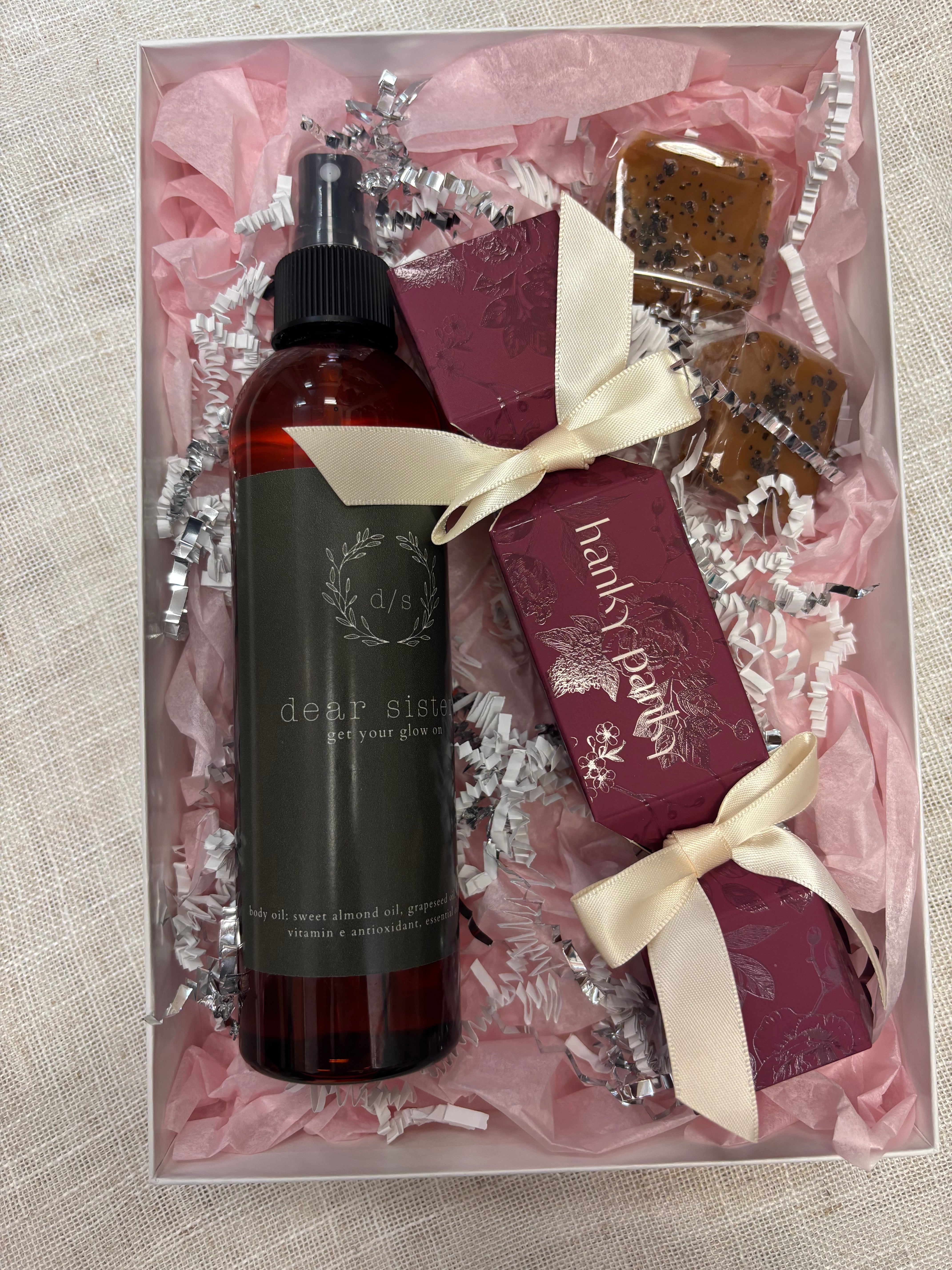 Unwrap pure indulgence this season with our Under the Mistletoe Box—a luxurious trio designed for those who deserve a little extra magic. Pamper yourself with our nourishing body oil that melts into skin like silk, slip into the iconic comfort of Hanky Panky's Original Rise thong, and savor decadent salted caramels that melt on your tongue. Whether you're treating yourself or gifting someone special, this curated collection whispers sophistication and self-care. Because the best gift? It's the one that makes you feel absolutely divine.