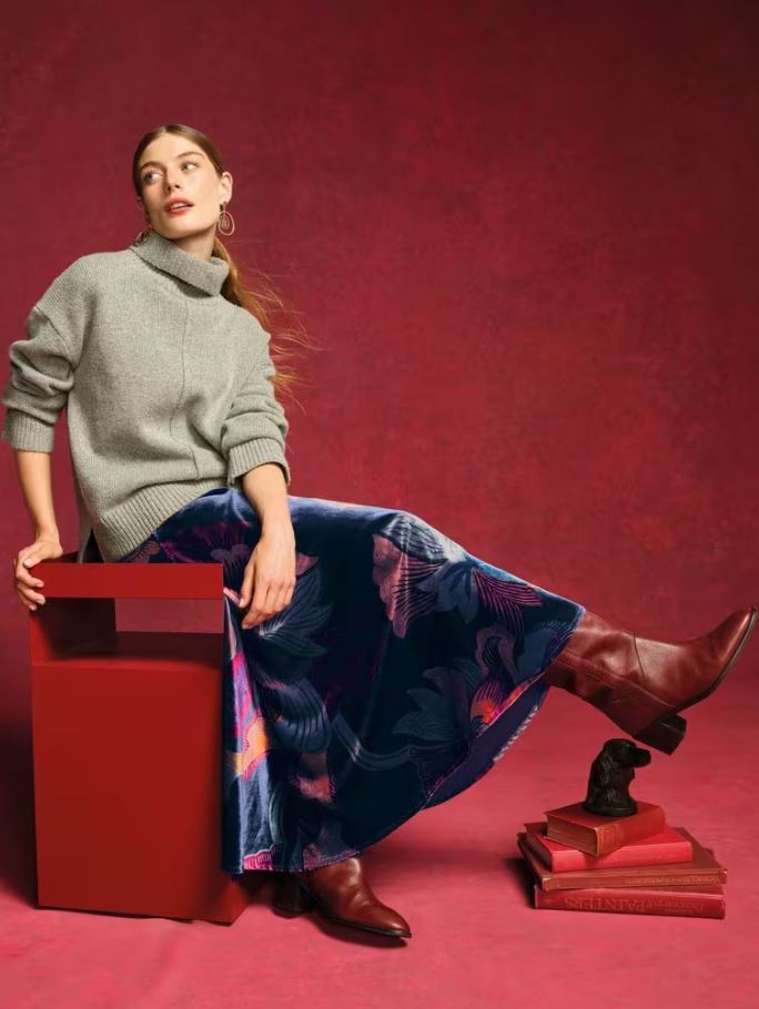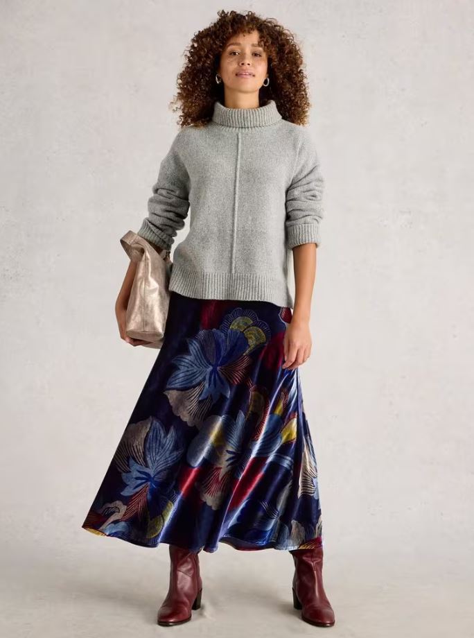 White Stuff Hope Bias Cut Velvet Skirt
