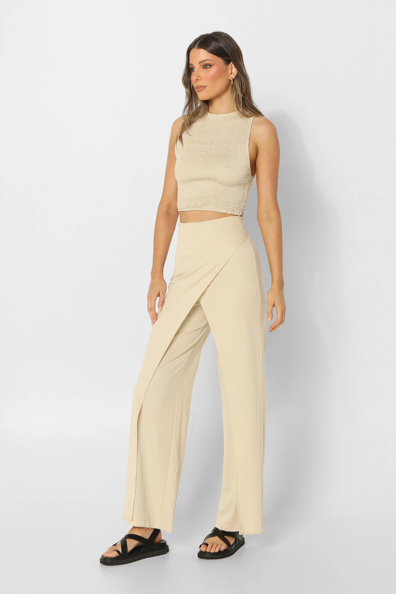Beige shirred front cropped top