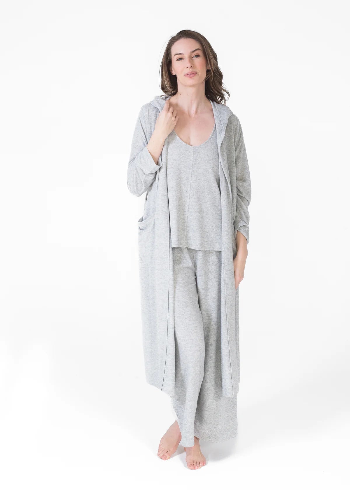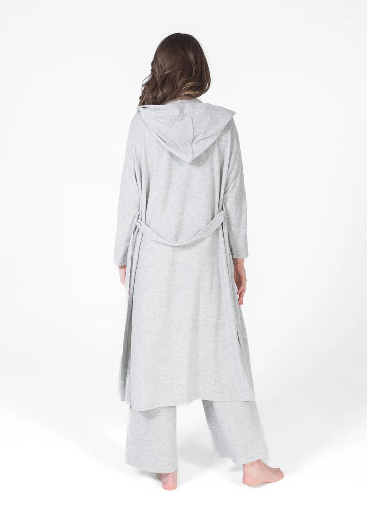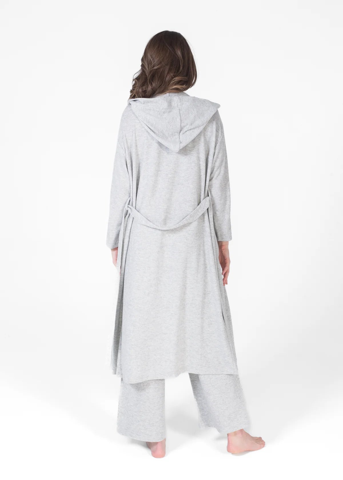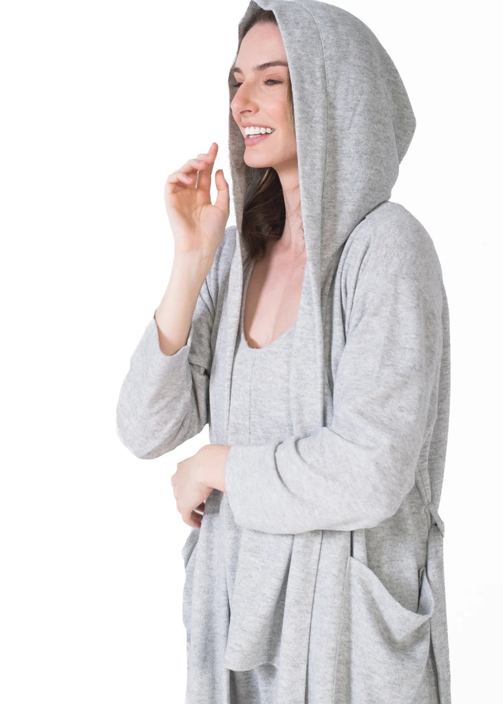 Sink into unparalleled comfort with our maxi-length hooded robe, designed for ultimate relaxation. Featuring deep pockets, belt loops, and a self-fabric belt, this cozy robe envelops you in warmth and ease, blending luxury with practicality.