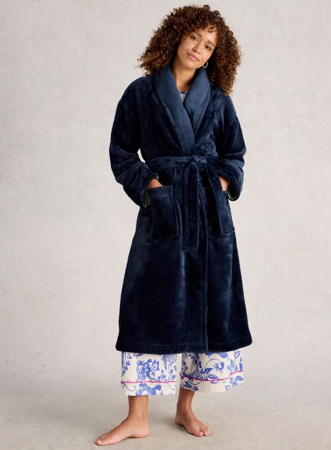 White Stuff Clover Cosy Dressing Gown Dark Navy