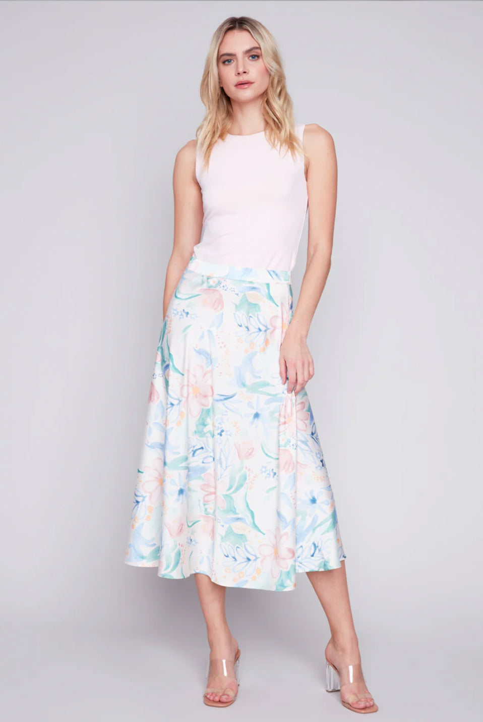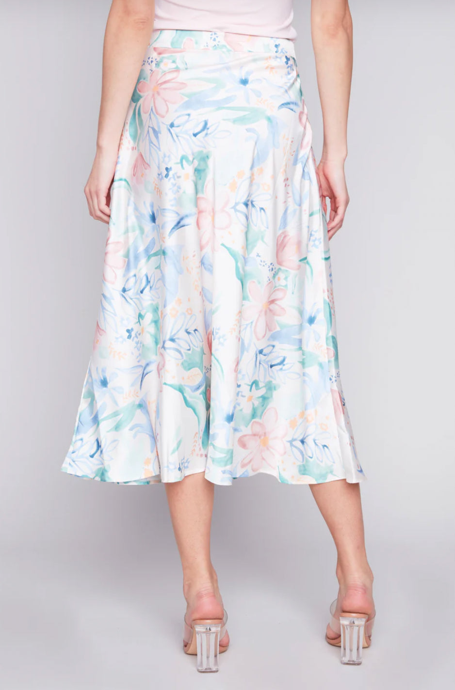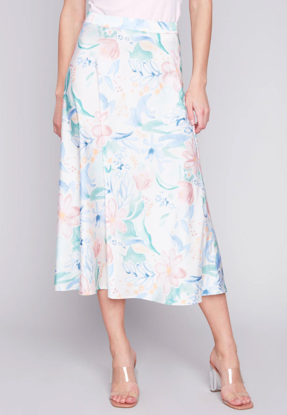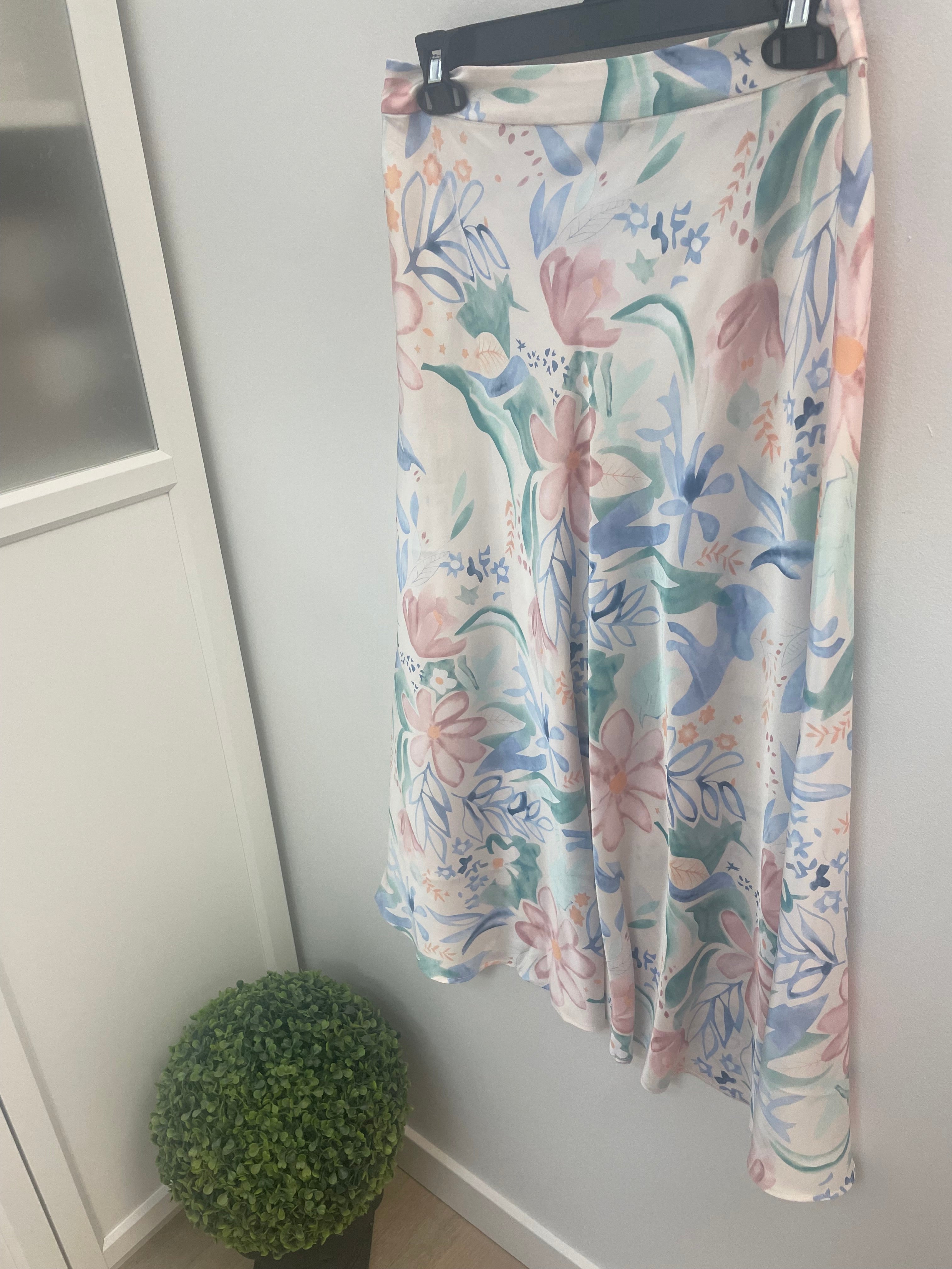 Make your outfit shine with this sleek satin skirt for women in a pretty summer print. A light and long classic skirt, this piece lets you build your look with whatever top you fancy – be it a classic T-shirt or an artsy blouse.
