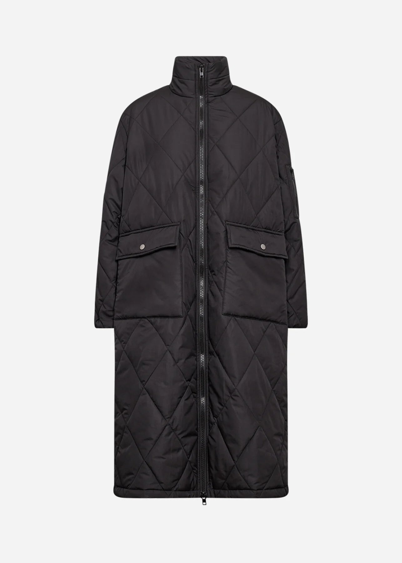 Stay cozy and stylish with the Soya Concept Fenya 74 Jacket in black. Made from 100% polyester, this jacket features a high collar, full-length zipper, and quilted texture for warmth and comfort. Snap button flap pockets add practical detail, perfect for keeping essentials close. Pair it with slim-fit jeans and ankle boots for an effortlessly casual look.