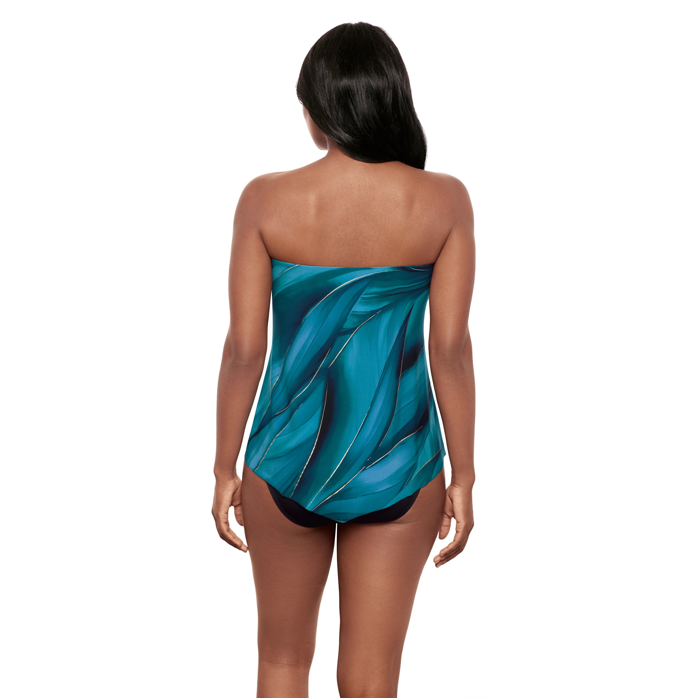 Signature Miratex® fabric gives shaping support to this strapless tankini top made with a built-in underwire bra and a drapey handkerchief hem.