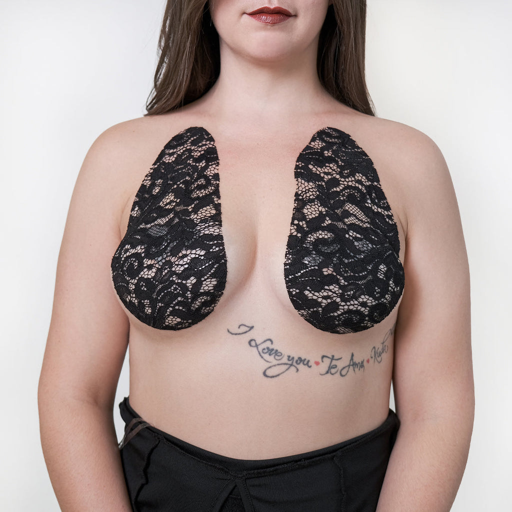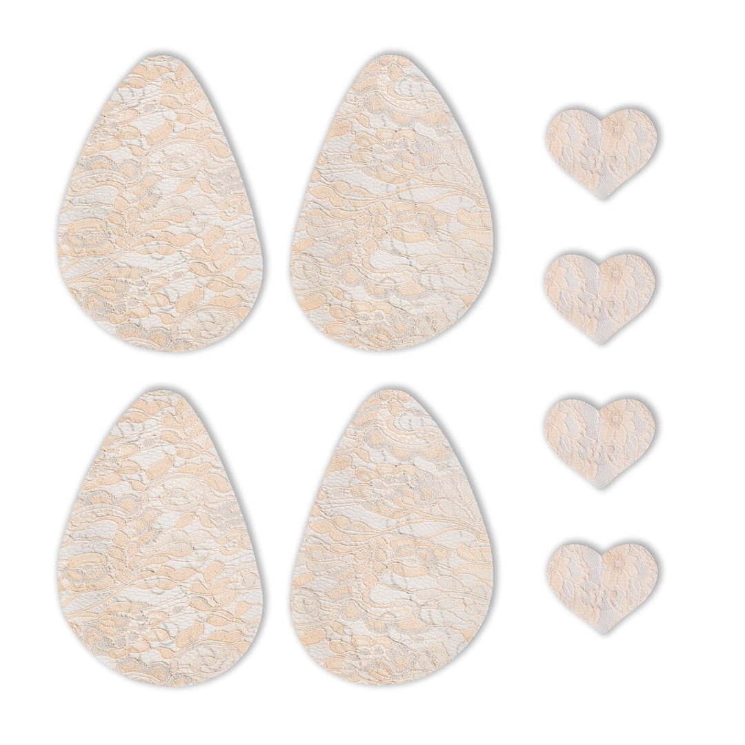 Made out of a luxurious lace and can be worn in any situation. It is easy to apply and offers long lasting hold. It's breathable, mouldable and customizable. Each kit contains 2 sets of breast tape and 2 sets of nipple covers.