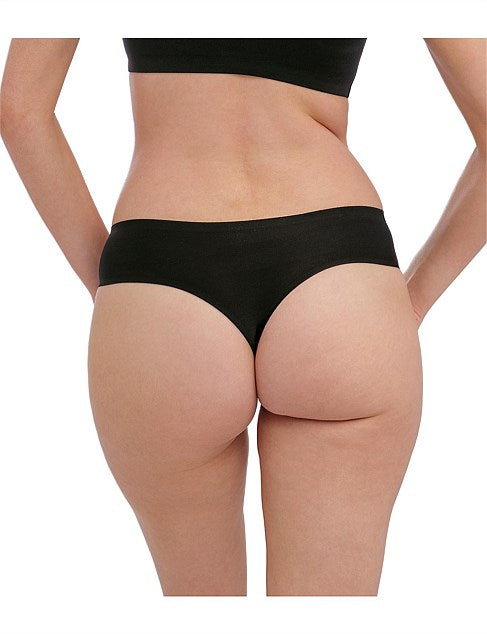 For a second-skin feeling and comfort like you've never felt before, the Smoothease Invisible Stretch Thong features a low back coverage and ensures a smooth finish under any outfit with clean cut edges and stitch free fabric in classic Black. - Classic thong shape