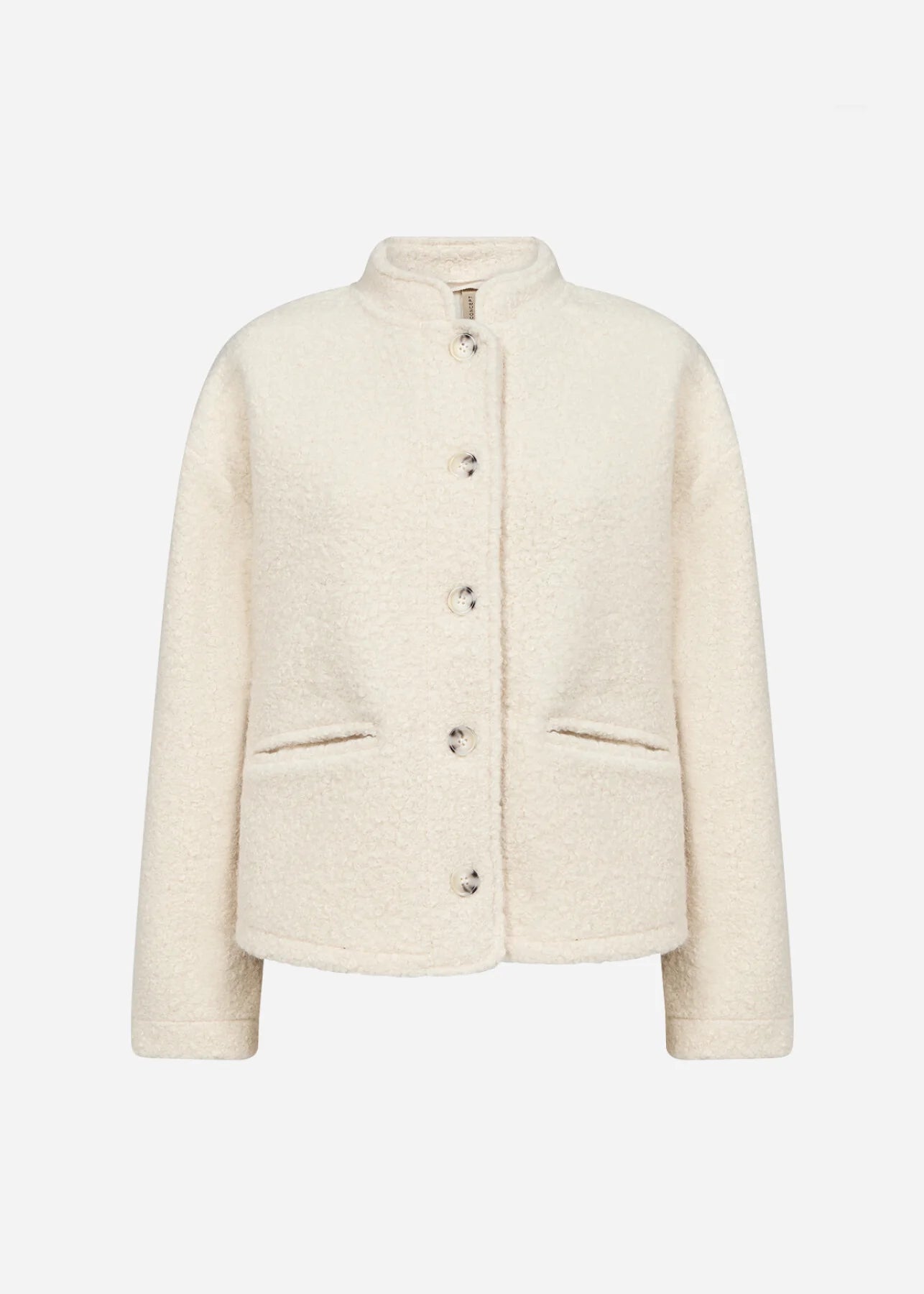 Shaima jacket, crafted from 100% recycled polyester, sports a trendy stand-up collar and button-up front. With two textured pockets at the front, it’s perfect for keeping your hands cozy. Textured boucle adds a cozy feel and versatile look.
